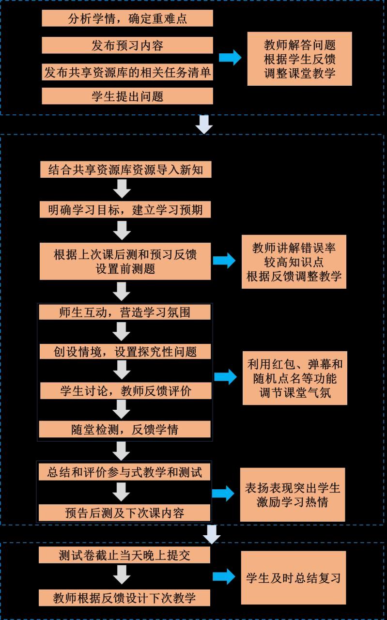 (5)参与式学习:是整个教学模型的设计重点。经过后测、预习和前测的三重反馈,教师对学情有一定了解,通过事先设计的师生互动,营造活跃学习氛围,引导学生逐步深入知识体系。教师创设情境,设置探究性问题,学生讨论,教师给与反馈点评,进一步提升学生运用知识能力。再随堂测试,随堂测试可以安排在几个重要知识点之后,也可针对知识点反复进行“参与式学习+随堂测试”。从学生角度,此设计能有效集中学生注意力,帮助其及时“学以致用”,有助于知识的充分吸收和运用。在参与式学习过程中,教师还可利用红包、弹幕和随机点名等功能对课堂气氛进行调节,充分调动学生学习热情。