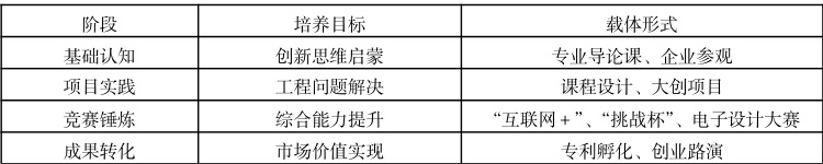 通过构建“基础认知→项目实践→竞赛锤炼→成果转化”四阶段培养路径,实现专业教育与双创教育的有机融合,有助于提升学生的创新创业实践能力。