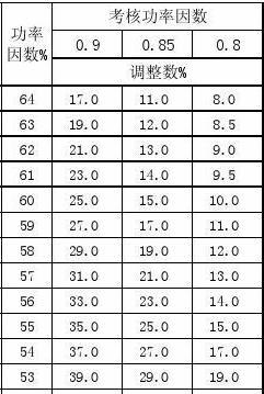 在日落后,逆变器进入非工作工段,此时系统呈现电网向光伏发电站供电的状态,即正向供电。虽然光伏发电单元停机,无电源输出,但是光伏发电站并非空载,配套电柜,直流电源,配套照明通风系统持续工作,需要电源维持,但总体功率较变压器容量小,接近空载,因此可按空载状态考虑。由于设备用电损耗小且为有功,变压器空载损耗大且为无功,因此此时光伏发电站整体功率因数较低。由于此时为用电状态,电网正向供电,因此应考虑供电部门对用户功率因数的要求,根据当地供电部门文件可知,本项目正向用电功率因数应不小于0.9,当功率因数低于0.9时,供电部门将在常规读取有功电量的基础上加收力调电费。力调标准如图: