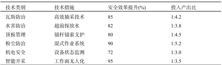 技术防控需要有效管理作为保障,应创新管理模式,提高安全管理效能。主要措施包括:实施安全风险分级管控;建立隐患排查治理长效机制;推行安全生产责任制;开展安全标准化建设;建立技术创新激励机制。某大型煤矿集团通过双重预防机制,事故率降低 3 5 % ,安全投入效率提高 40 % 。