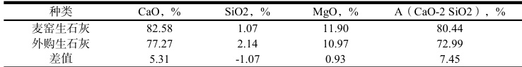 在 1 号 烧结机的生产体系中,生石灰的质量对烧结混合料制粒以及烧结矿的产质量起着关键作用。其主要成分 CaO 的含量高低,直接关联到烧结过程中各项物理化学反应的进行程度和效果。高含量的 CaO 能在烧结混合料制粒阶段发挥更为显著的作用,促进物料成球,进而提升烧结矿的产量和质量。然而,当前 1 号 烧结机所用的生石灰,尤其是外购生石灰,质量参差不齐,CaO 含量不稳定且整体水平有待提高,这严重制约了烧结生产的优化和生石灰消耗的降低 ,具体质量情况如表1 所示。