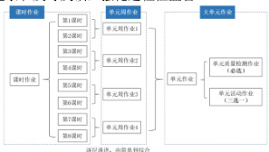 基于学生的学情和教情,将单元作业分为课时作业、单元周作业和单元作业。课时作业是每节课的课后作业,主要落实本节课的教学重点和教学目标;单元周作业是以单元目标和本周的教学目标为基础,进行的改编和设计的一些题目,是多个知识点的综合应用;大单元作业以单元教学实践为准,以单元教学目标为整体要求,如解题编题、知识梳理和开放性问题等,倡导学生自主完成任务,学以致用。各周期作业的完成过程中教师应注意过程性评价的记录和及时反馈,强化过程性监督。