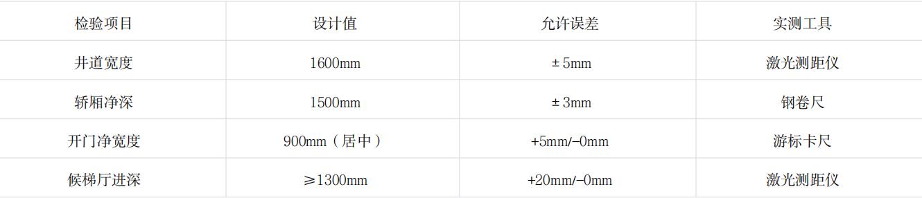 误差范围:井道长宽误差≤±5mm,垂直度偏差≤1‰,避免因尺寸超限导致轿厢无法安装或担架进出受阻。