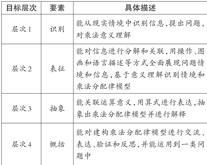 表1 乘法运算律模型意识的表现性目标