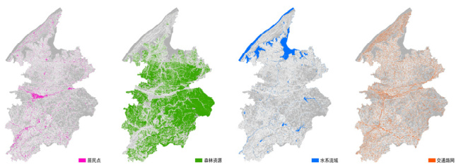 卫星影像分析解读(RS):用 ENVI 软件对临湘市最新 LANDSAT 卫星影像监督分类,分析居民点、森林资源、水系流域、交通路网等空间要素分布。线路规划优先选森林资源集中、离水系流域和交通路网近、离居民点集中区远的区域,临湘市空间要素现状见图 2