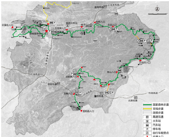 图5 罗霄山国家森林步道临湘段道路系统布局图