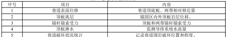 表 1 巷道综合监测内容