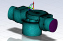 由于减压阀结构较为复杂,不同区域变径及组合零部件较多,导致整个流体的几何模型十分复杂,必须先构造减压阀的固体域模型,再从中抽取出流体域模型。