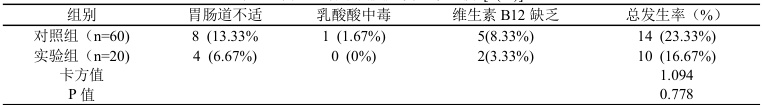 注:*表示与对照组比较P 值<0.05,具有统计学意义。2.4 患者的不良反应情况两组不良反应发生率无显著差异(P>0.05)。所有不良反应均为轻度,未影响治疗进程,见表5.
