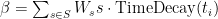 其中, Wq 和Ws 为线性变换矩阵,TimeDecay(ti)为时间衰减函数,定义为: