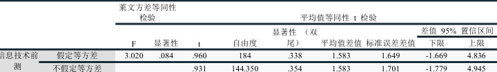 表 2 信息技术前测独立样本检验