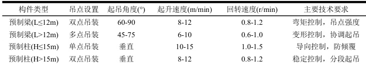 表2 预制梁柱构件吊装技术参数表