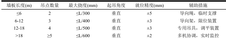 表3 预制墙体构件吊装工艺参数表
