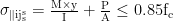监控应力值(MPa);M 弯矩(kN·m); y 截面距中性轴距离(mm);I 截面惯性矩(mm⁴);P 轴力(kN);A 截面面积(mm²);fc混凝土抗压强度(MPa)