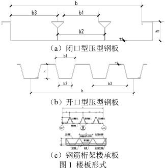通过在不同荷载、楼板厚度、次梁布置工况下分别采用闭口型压型钢板组合楼板、开口型压型钢板组合楼板、钢筋桁架楼承板,对比分析得出以下结论: