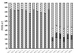 由图 3 可以看出,闭口型、开口型压型钢板组合楼板用钢量由支座钢筋用量和钢板用钢量组成,且两种类型楼板中各部分用钢量占比数值相近、 钢筋用量;相同楼板厚度时,开口型压型钢板组合楼板双道次梁布 次梁布置时,不同楼板厚度用钢量占比差异较小。钢筋桁架楼承板用 筋用量、板底钢筋用量组成,占比由大到小依次为:桁架、钢板、支座、 筋与板底钢筋用量之和占总用钢量的 25%~28% 。