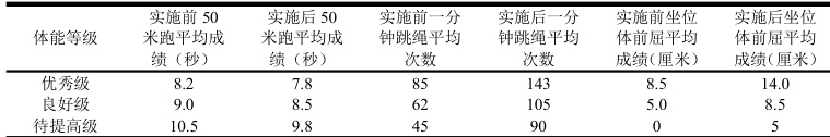 在实际教学场景中,优秀级学生投身于变速跑训练,其心肺功能在快跑与慢跑的交替刺激下不断强化,有氧耐力得以持续提升;良好级学生参与的循环训练,各项目从不同角度对身体机能进行锻炼。待提高级学生参与游戏化训练,在充满欢乐与挑战的氛围里,逐渐克服内心对体育运动的恐惧。