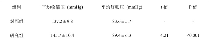 表1:对照组与研究组24 小时平均收缩压和舒张压比较