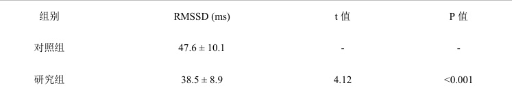 表3:对照组与研究组RMSSD 比较