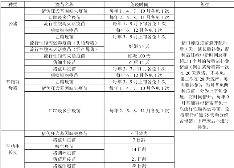 以国内通行的免疫程序为基础,收集整理自贡市 20 个生产效益较好规模场的免疫程序,分析普遍适用性,总结一个系统免疫程序,通过使猪群获得特异性免疫力,形成群体保护,有效阻断病原在猪群内传播和扩散,显著降低疾病爆发风险、发病率和死亡率。
