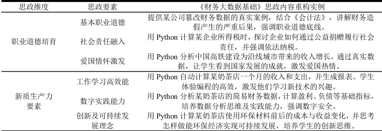 表1.《财务大数据基础》思政内容重构实例