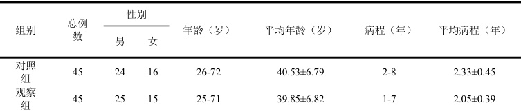 聚焦2024 年1 月-2025 年1 月我院消化内科收治的90 例UC 患者,使用随机数字表法分为两组对象,基线资料见表1,无显著差异(P>0.05)。