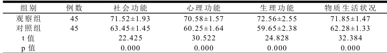 观察组生活质量更高( (P<0.05) )。