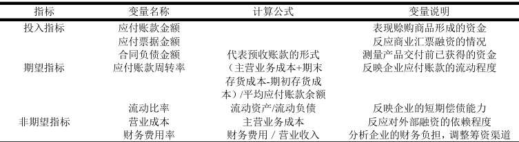 三、家电行业商业信用融资效率测度指标体系