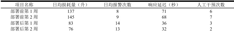 控制系统运行评估以油品损耗变化趋势为核心评价指标,结合报警次数、响应延迟、人工干预频次等参数建立多维评估矩阵,对系统控制性能与部署成效进行定量判定。监测周期内系统自动统计损耗识别率与异常时段覆盖率,同时对比控制介入前后各阶段的损耗数值变化,剖析控制策略对异常抑制效果的具体表现。报警数据与人工干预记录进行关联分析,检验系统独立响应能力与异常处理闭环完整性。以下表2 为典型油库在系统部署前后四周内关键控制指标变化汇总。
