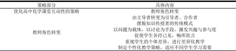 表2 优化高中化学课堂互动性:教师角色转变策略表