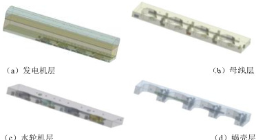 (a) 发电机层(b) 母线层(c) 蜗壳层
