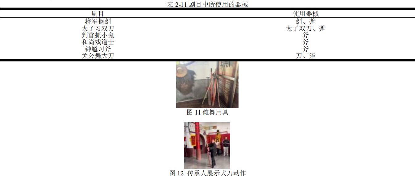 3.1.5 傩舞中傩面具与器械的使用与现在的自由操、武术的表现形式基本相同,增加了视觉效果,增强了表演的艺术性。