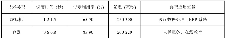 表 1 虚拟机与容器技术在该平台中的性能表现对比