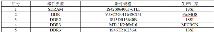 选用市场上典型的动态随机存储器参加试验,具体参试器件如下表。