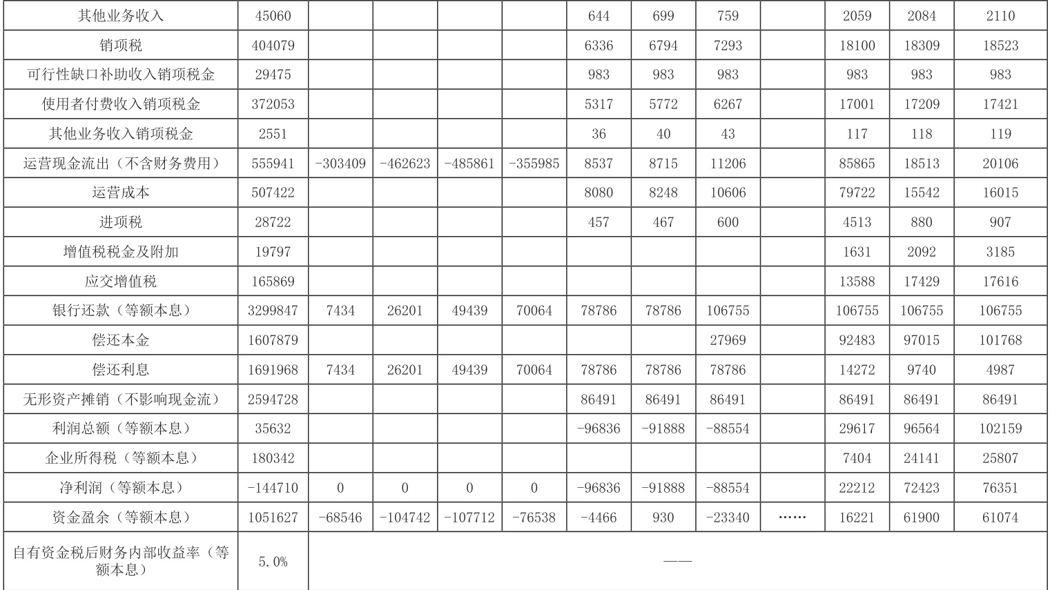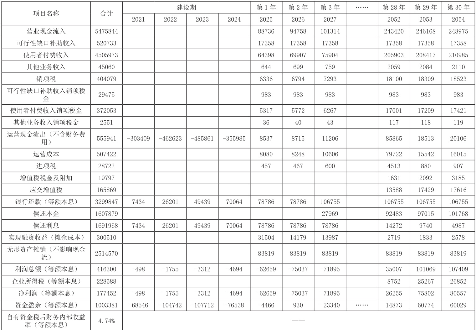 注:无形资产摊销按运营期30 年(无形资产资产摊销税法规定为10 年)平均摊销