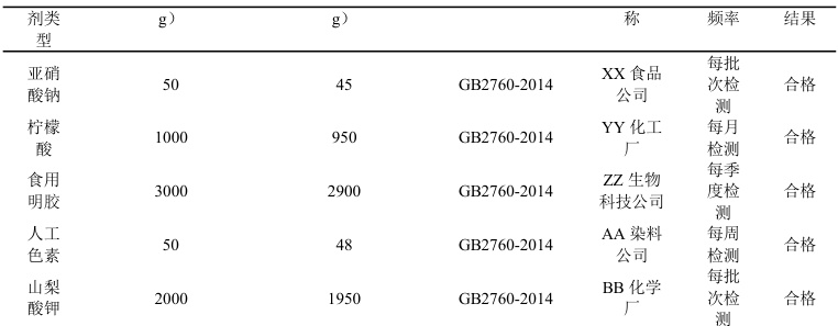 监管部门在添加剂使用监管工作中需发挥关键主导作用,政府应牵头搭建覆盖全行业的食品安全信息平台,通过实施统一的市场监控机制,及时发现并处理各类违规使用添加剂的行为,监管部门还需进一步加大对企业的现场检查力度,同时借助食品安全大数据分析系统与智能追溯系统等现代科技手段,构建起对食品添加剂使用的全程动态监控网络。食品生产企业应积极配合监管工作,定期对产品开展全面的安全性检测,特别是针对儿童食品、婴幼儿配方食品等高风险品类,需向监管部门提交包含检测方法、数据指标等详细内容的检测报告,以便提前排查并消除潜在风险,在构建食品添加剂安全性管理体系的过程中,坚持科学、规范、透明的管理模式至关重要,这一模式不仅能有效保障消费者的身体健康,还能从整体上推动食品行业安全水平的显著提升。见表1: