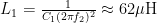 串联上电容C1,使之在f2 处并联谐振,则此时对于 f2 的信号,其电感和电容并联网络的阻抗计算公式如下: