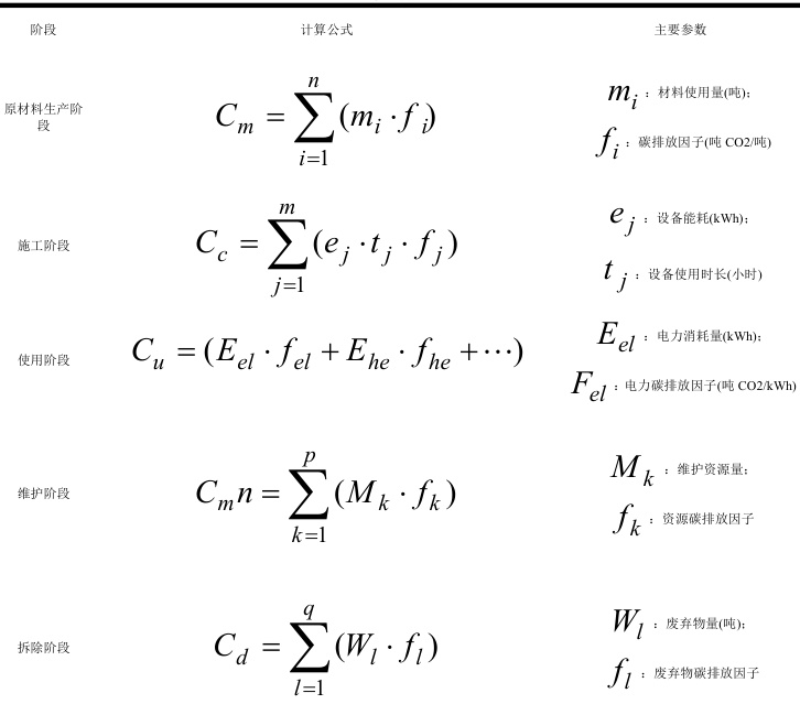 绿色建筑生命周期碳排放核算方法需要根据不同阶段碳排放来源特征,综合应用通用的生命周期评价方法(LCA)、碳排放因子法等核算方法。LCA 方法通过定量评价建筑各阶段的碳排放量,揭示其对环境的影响。碳排放因子法根据建筑材料、建造方法和能耗等参数确定碳排放因子,计算各个阶段的碳排放量。