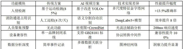 5.聚类市场场景:针对商场、园区等聚类市场的特点,系统实现了全方位的智能监管,主要技术指标对比如