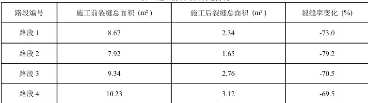通过沥青路面施工后的长期监测与室内试验,验证了其抗裂性能及耐久性。试验结果表明:改性沥青混凝土具有良好的低温抗裂性能,在该地区这种气候条件下具有较高的承载能力。特别是低温时,其开裂速度比普通沥青混凝土要慢得多。从表1 可以看出,低温抗裂沥青混凝土路面的裂缝面积明显减小,尤其是寒冷地区(路段1 和 2),裂缝面积减小了近 70% ,说明改性沥青混凝土可以有效抵抗低温引起的路面开裂。
