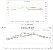 从 9:00 至 12:00,一反氢气进料分别从 962g/h 增加到 1050g/h,13:00 再提至 1242g/h,二反的氢气进料维持 41200g/h 不变(见图 3)。化验结果显示一反粉料 MI 从 3.24g/10min 涨至 4.19g/10min,14:00 涨至 4.84g/10min,二反粉料 MI 从 36.92g/10min 涨至 45.35g/10min,17:00 涨至 50.6g/10min(见图 4)。