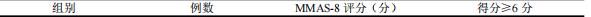 使用 Morisky Medication Adherence Scale(MMAS-8)进行依从性评估。该量表共 8 个条目,涵盖患者漏服药、擅自停药、按时服药等行为,满分为8 分,得分 ⩾6 分判定为良好依从性。量表评估在第1、3 和6 个月进行,均由接受统一培训的研究人员完成。