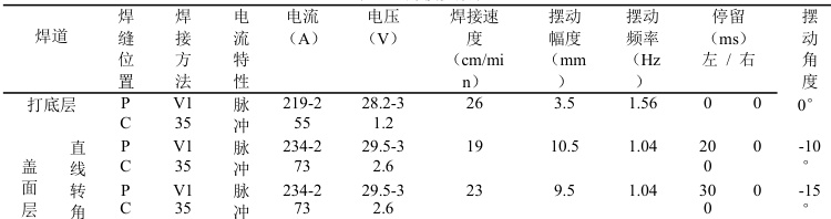 表一:焊接参数表