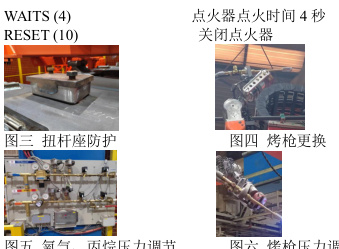 LOBB: 点火开始 RESET (10) 关闭点火器 RESET (11) 关闭烤枪气体输出 WAITS (1) 等待1 秒 SET (11) 打开烤枪气体输出 WAITS (4) 烤枪等待4 秒 SET (10) 打开点火器