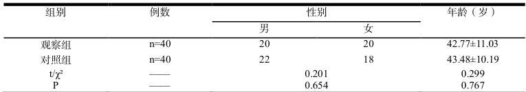 纳入2024 年2 月至2025 年3 月于我院门诊注射的80 例患者资料,根据护理方式不同,分为对照组与观察组,各40 例。两组患者基线资料无差异(P<0.05),具有可比性。