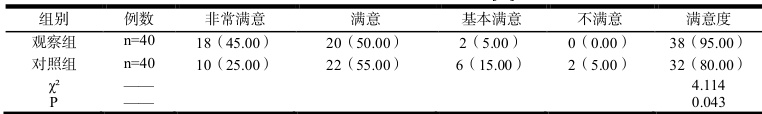 2.2 满意度观察组护理满意度显著优于对照组(P<0.05),见表2。
