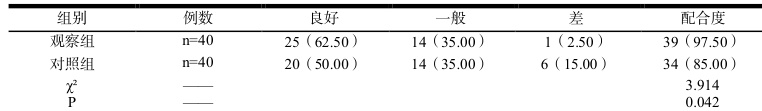 观察组心理状态显著优于对照组(P<0.05),见表3观察组护理操作配合度显著高于对照组 P<0.05 ),见表4。