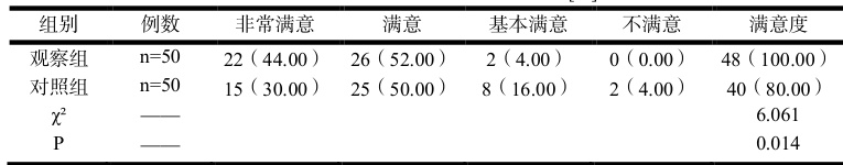 表2 两组患者护理满意度对比分析 (n[%] )