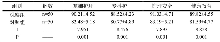 观察组护理质量评分显著高于对照组( P<0.05. ),见表3。