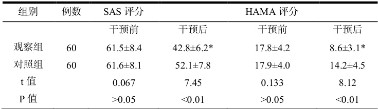 表 1 两组患者焦虑评分比较(